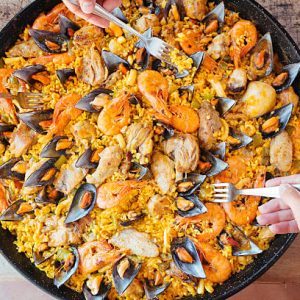 PAELLA DE MARISCOS + 2 BOTELLAS DE VINO